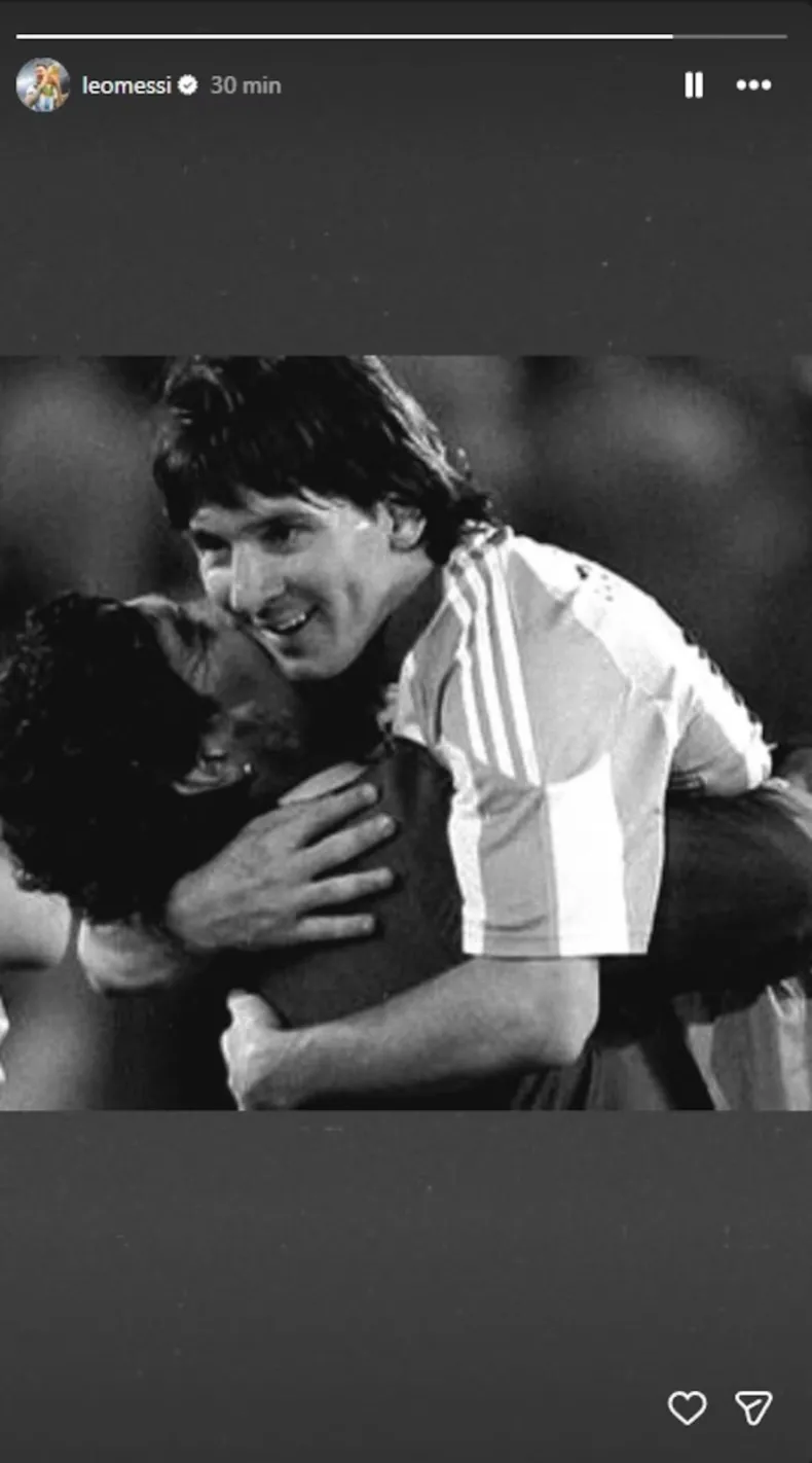 Por medio de las historias de Instagram, el delantero del Inter Miami compartió una imagen en blanco y negro donde se lo ve junto a Maradona en un abrazo, mostrando así el profundo vínculo entre ambas leyendas de la Albiceleste. La publicación no incluía texto, dejando que la imagen hablara por sí sola.