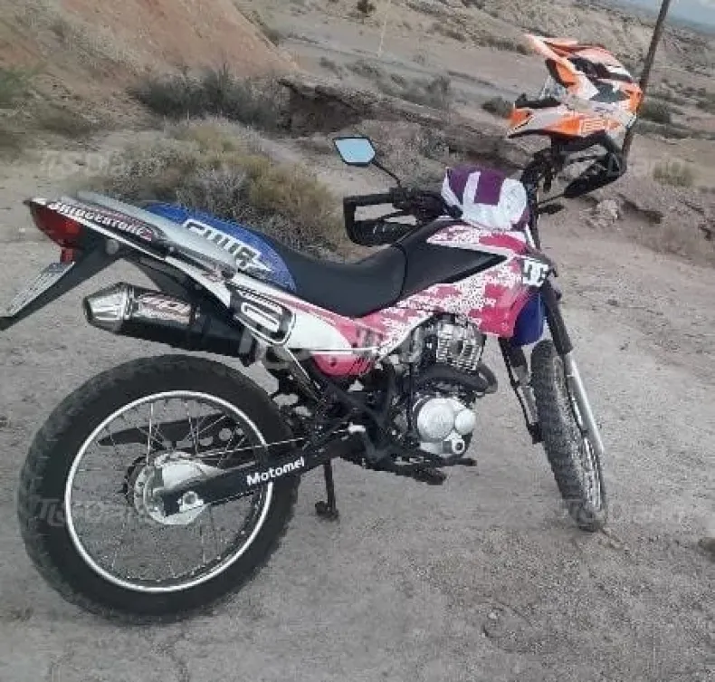 Según información policial, entre lo robado figura una moto Motomel CX 150cc con patente A036-VIH, distintiva por su ploteado en colores rosa y fucsia y el número 08 en el frente y laterales, además de cubrepuños negros.