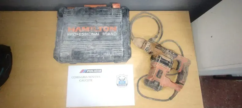 Al requisarlos, se les incautó un estuche y una caja con el rotomartillo. Minutos después, el damnificado acudió a la sede policial para informar la sustracción del artefacto, que se encontraba dentro de su camioneta en la intersección de Diagonal Sarmiento y Rodríguez y Olmos, frente a la Parroquia Cristo Rey. Tras reconocer la herramienta, la recuperó en ese momento.