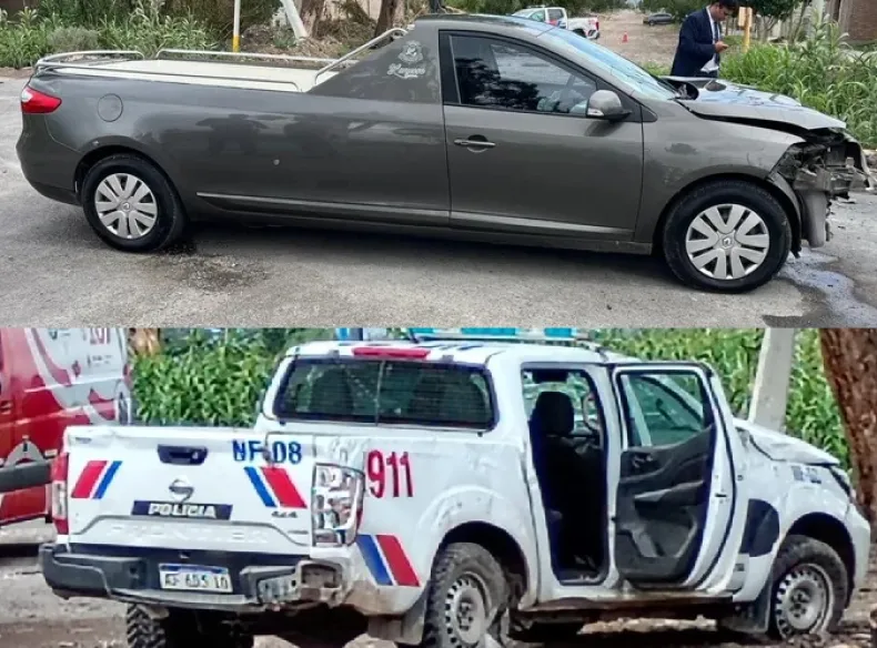 En la mañana del domingo, un vehículo policial Nissan Frontier sufrió un grave accidente en la intersección de calles Chacabuco y Agustín Gómez, en Rawson. El móvil perteneciente al Comando Oeste iba en dirección a atender un hecho de Flagrancia cuando colisionó violentamente con un Renault Fluence perteneciente a la Cochería Lanusse.