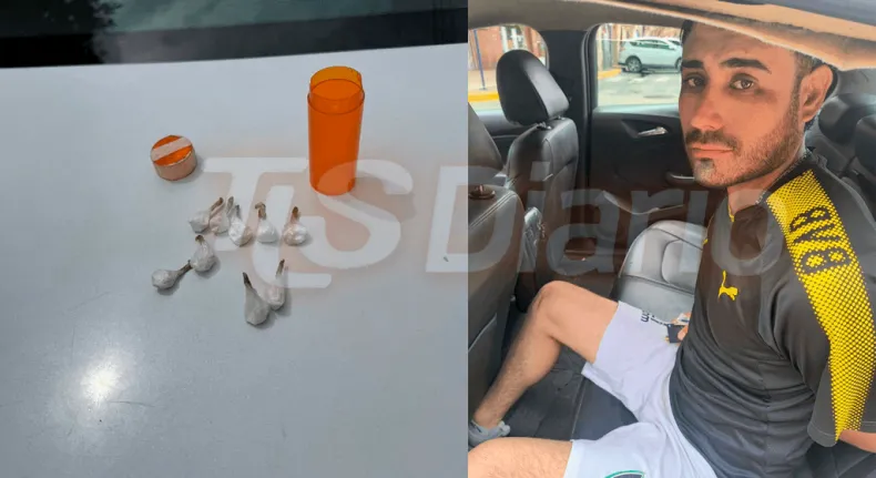 Según informaron fuentes policiales a Telesol Diario, al realizar una entrevista de rutina y requisar sus pertenencias, hallaron un frasco con 9 envoltorios de cocaína, cada uno con 1 gramo de droga. Ante el hallazgo, el joven, identificado como Fernando Álex Tejada, se alteró y generó un escándalo en plena vía pública.