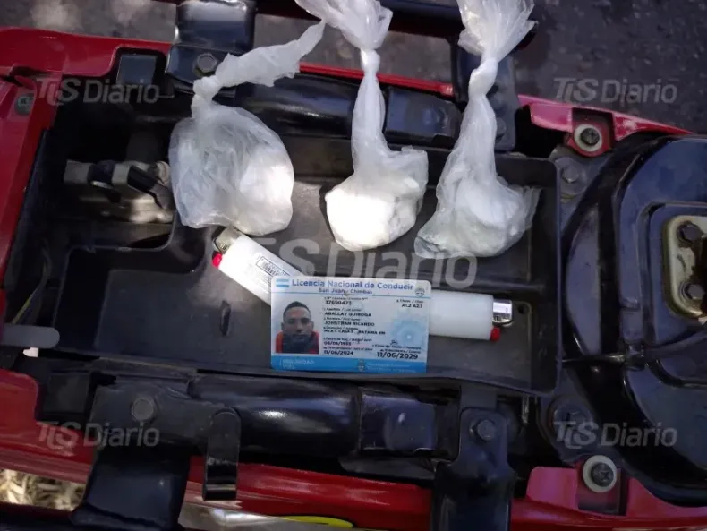 Jonathan Ricardo Aballay Quiroga fue detenido en la avenida Circunvalación tras ser sorprendido en una moto realizando maniobras peligrosas. Al ser requisado, se le encontraron dosis de cocaína y admitió haber comprado la droga a una mujer vinculada al narcomenudeo en Chimbas.