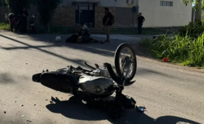 Durante la mañana de este miércoles se registró un fuerte choque entre motocicletas en el departamento Santa Lucía. El siniestro ocurrió en la intersección de Martín Güemes y Honduras, frente a un conocido salón de eventos de la zona.
