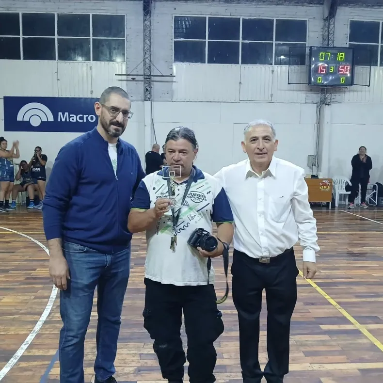 En un acto de merecida justicia, se destacó el homenaje al fotógrafo Adrián Rebollo, profesional de primer nivel cuya labor refleja en cada imagen la pasión y el compromiso con el básquet sanjuanino.