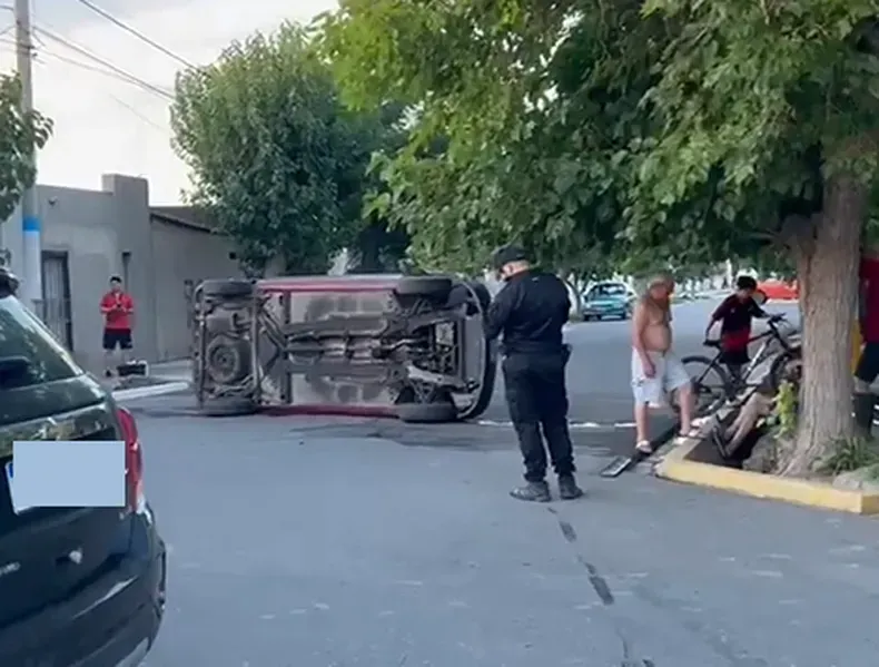 Un automóvil volcó en la intersección de Cabildo y Entre Ríos en Rawson, causando alarma entre vecinos. Afortunadamente, no hay heridos, aunque el vehículo sufrió importantes daños.