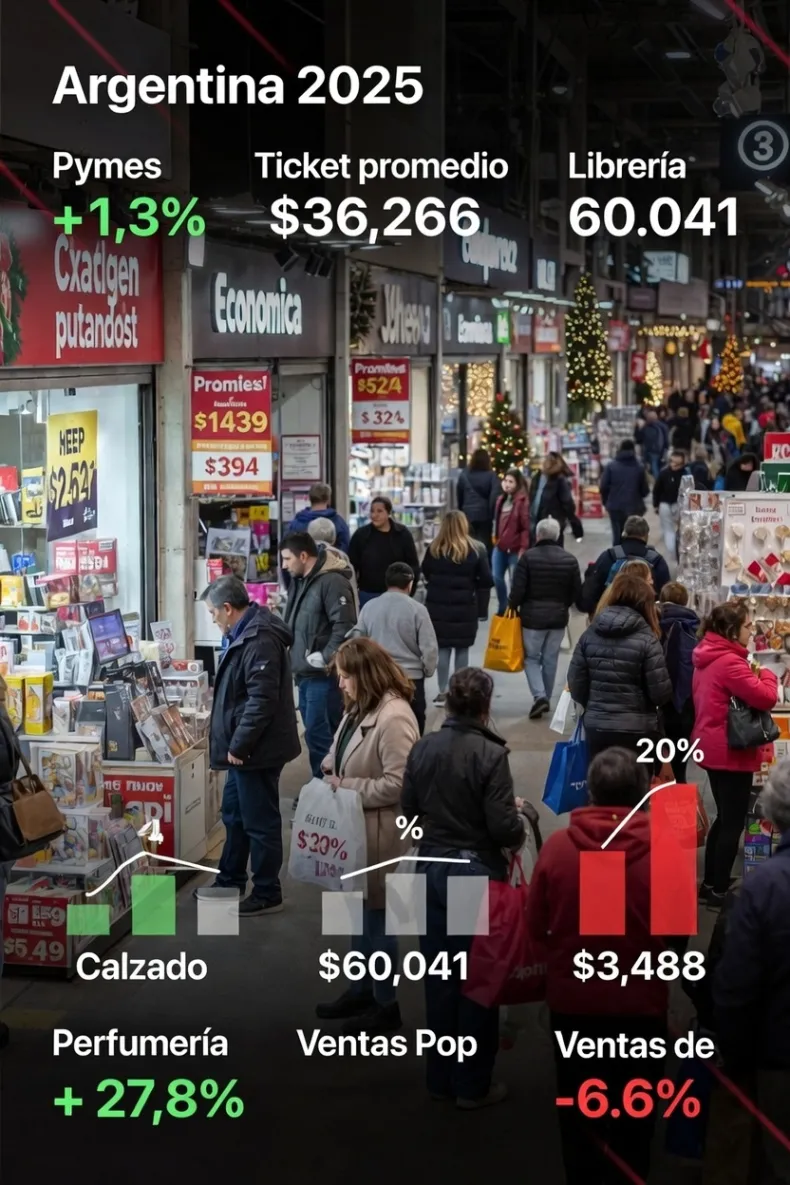 El ticket promedio de las compras navideñas alcanzó los $36.266. El valor más alto se registró en el rubro calzado y marroquinería, con un promedio de $60.041, mientras que el más bajo correspondió a librerías, con $34.484.
