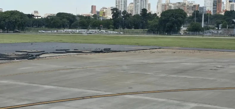 El sector afectado no corresponde a la pista propiamente dicha, sino a uno de los sitios aledaños a la cabecera 31, que es la que se encuentra en la zona sur del Aeroparque.