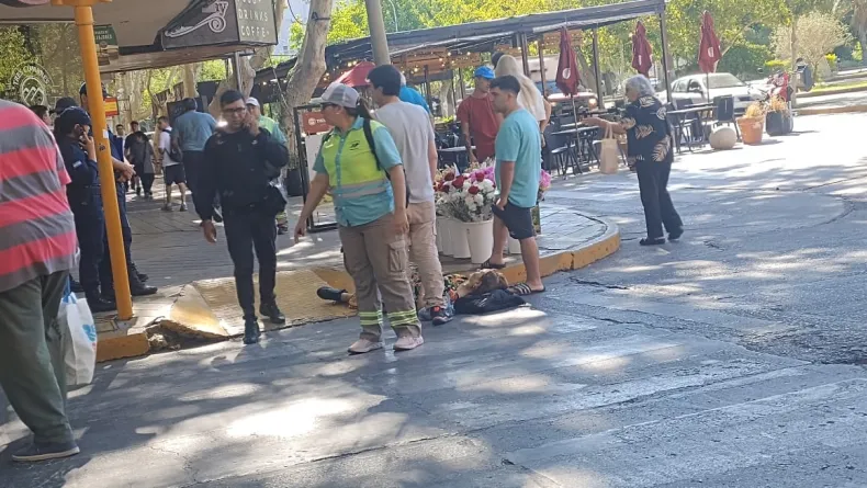 Esta mañana, una mujer sufrió una caída en la esquina de las calles Mendoza y Rivadavia, localizadas en el microcentro de la ciudad.
