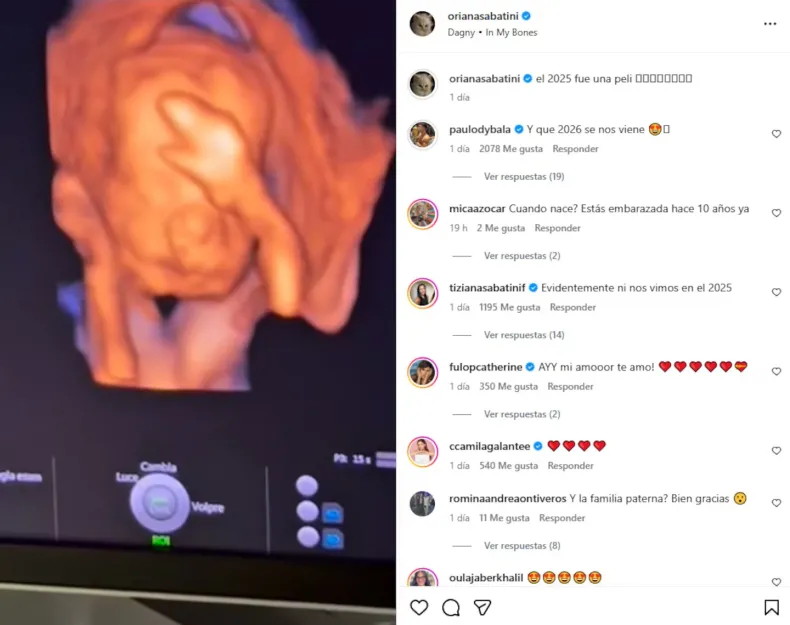 En medio de esta emotiva recopilación, Oriana mostró una captura de uno de sus ultrasonidos, donde se distingue el perfil de su hija. La familia confirmó que esperan una nena, y según declaraciones de Catherine Fulop al programa LAM (América), la llegada del bebé está prevista para mediados de marzo.