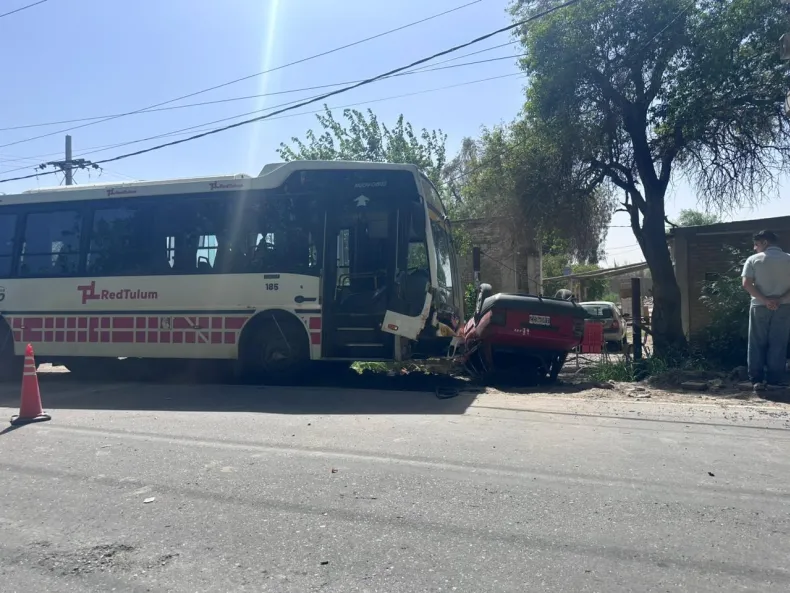 Un colectivo de la RedTulum impactó por detrás a un Fiat Duna en la intersección de General Acha y Calle 6, provocando el vuelco del vehículo y heridas en su conductor de 78 años, quien fue trasladado al Hospital Rawson.