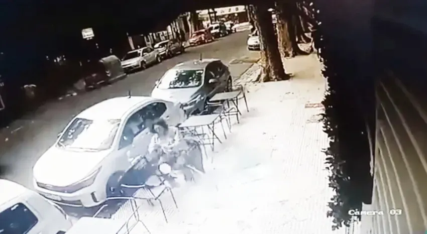 El episodio ocurrió en Ciudad de la Paz al 300 y fue captado por una cámara de seguridad. En el video se ve al cliente sentado tranquilamente cuando, de manera repentina, un panel de blindex cae desde lo alto del edificio y lo impacta de lleno.