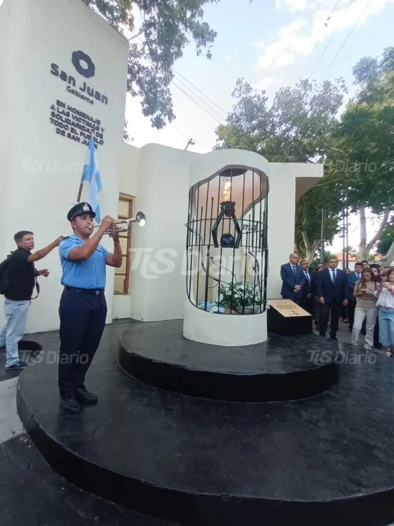 Tras el encuentro institucional, Santilli acompañó al gobernador en el acto homenaje por un nuevo aniversario del devastador sismo que, el 15 de enero de 1944, destruyó gran parte de la ciudad y provocó la muerte de entre 8.000 y 10.000 personas, una cifra que nunca pudo ser precisada con exactitud.