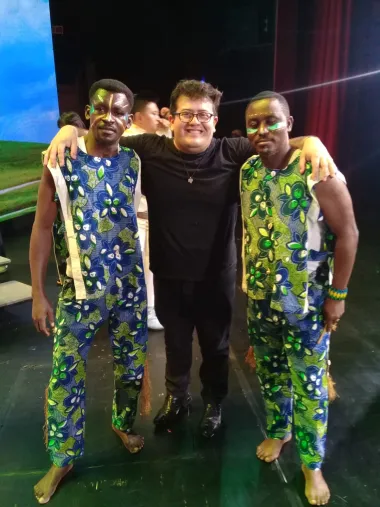 Una de las anécdotas más coloridas de su carrera ocurrió en un camarín de Beijing. Sin compartir un idioma común, Goku se encontró con dos percusionistas de Gabón (África).
