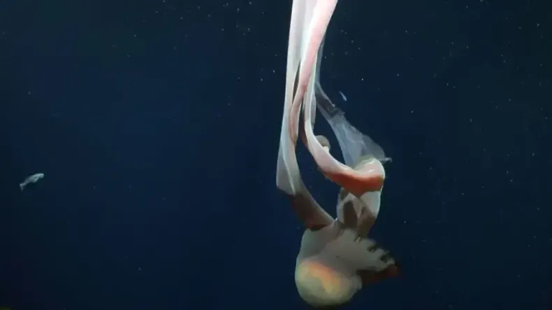 Durante una exploración en las profundidades del Mar Argentino, científicos argentinos hallaron una medusa gigante de la especie Stygiomedusa gigantea, sorprendiéndolos por su gran tamaño y movimientos elegantes. El ejemplar fue registrado a unos 253 metros de profundidad, en una zona todavía poco estudiada y llena de misterios.