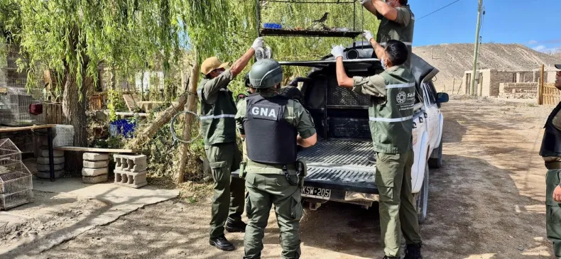 En un operativo realizado en una vivienda de Rodeo, personal de Gendarmería incautó aves silvestres y elementos para su cautiverio en una causa por violación a la Ley de Conservación de la Fauna.