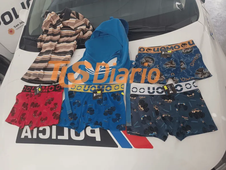 Durante la inspección, se encontró en poder de la pareja una mochila negra que contenía prendas de ropa interior y remeras con stickers comerciales. No pudieron justificar la procedencia de la mercadería, lo que junto al análisis de imágenes confirmó su responsabilidad en el hurto.