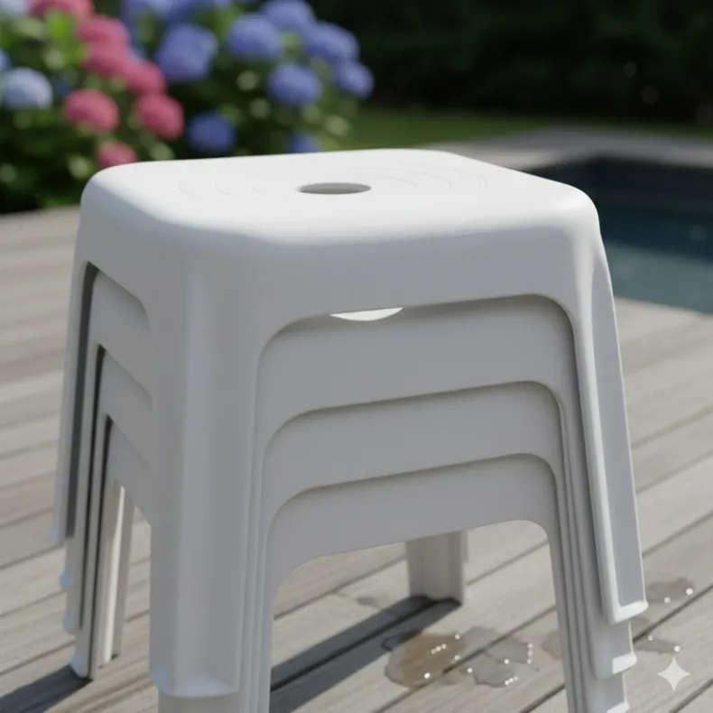 Desde el punto de vista de la fabricación, el diseño circular ayuda a distribuir el material plástico de forma uniforme durante el proceso de inyección, reduciendo puntos de tensión que podrían causar grietas o deformaciones, lo que resulta en una banqueta más robusta y duradera.