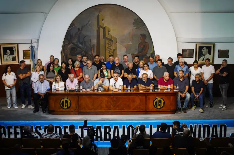 Detalló que la CGT llevó adelante "12 movilizaciones y 4 paros" en el gobierno de Milei, y destacó: "Hemos sido consecuentes y responsables, no solamente en mantener la paz social ante la protesta, ante la negación al diálogo, ante la negación al reclamo que hemos hecho, no solamente por la pérdida de puestos de trabajo, por la pérdida del poder adquisitivo, por la pérdida de las prestaciones de salud, sino por el rompimiento del tejido social y productivo que se está llevando adelante".