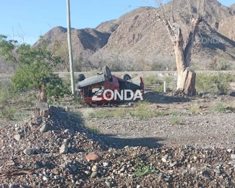 Un fuerte accidente tuvo lugar este lunes durante la siesta en Avenida Ignacio de la Roza, en el tramo rumbo al Jardín de Los Poetas, cercano al ingreso del Hospital Dra. Julieta Lanteri. Un Fiat Uno de color rojo perdió el control y volcó fuera de la calzada, dejando a su conductor malherido.