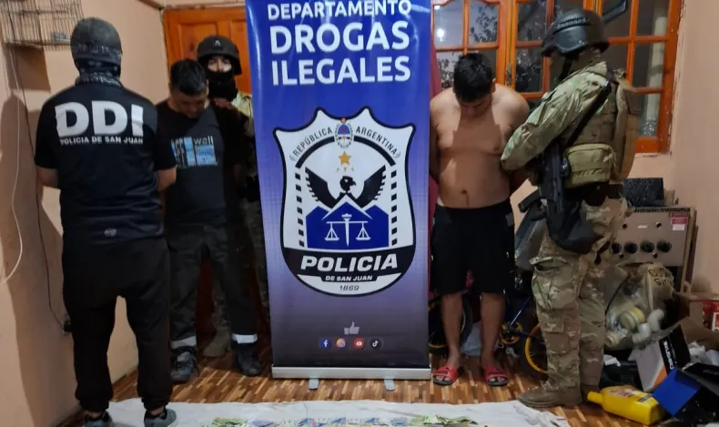 Un fuerte despliegue policial permitió desbaratar una red de venta de cocaína que operaba en el departamento Chimbas. Tras meses de investigación, los efectivos concretaron allanamientos simultáneos en tres domicilios ubicados en el Barrio Parque Industrial, Loteo Parque Norte II y Barrio Cipolleti.