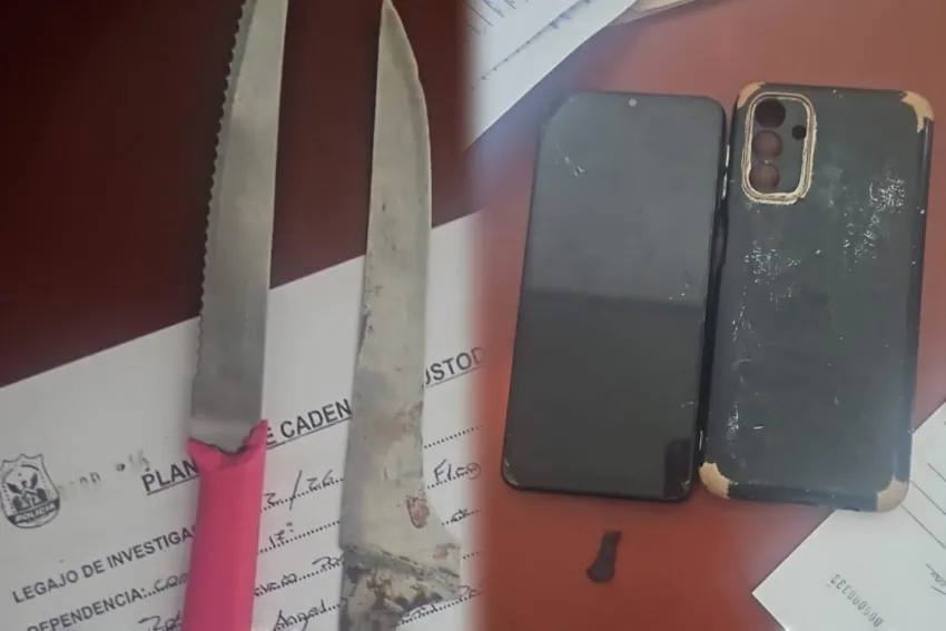 Los sospechosos, residentes del barrio Mariano Moreno, fueron aprehendidos en sus domicilios tras una rigurosa persecución policial. Durante el operativo se incautó un teléfono celular Samsung reportado como robado y dos cuchillos de cocina con manchas de sangre.