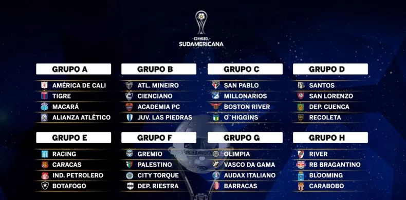 Además, Tigre formará parte del Grupo A junto a América de Cali, Macará y Alianza Atlético. Deportivo Riestra competirá en el Grupo F frente a Gremio, Palestino y Montevideo City Torque, mientras que Barracas Central lo hará en el Grupo G ante Olimpia, Vasco Da Gama y Audax Italiano.
