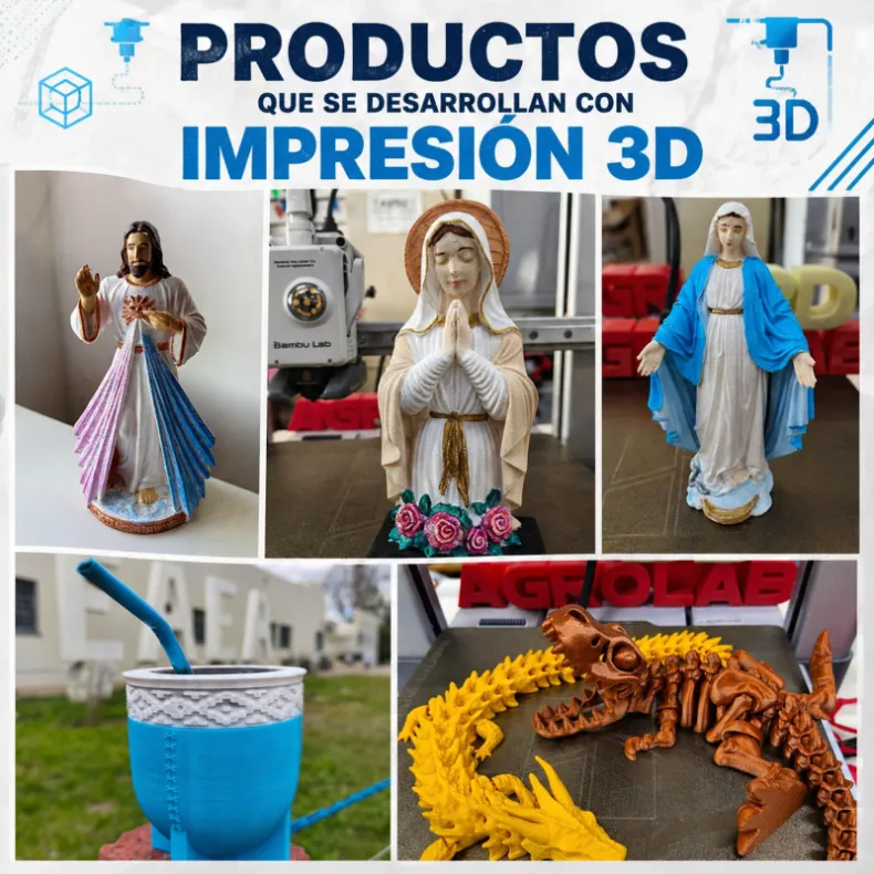 Uno de los proyectos más destacados es el Agrolab 3D, un laboratorio de impresión que ya lleva ocho años de trayectoria y que recibió un impulso fundamental hace dos años con la donación de una máquina de última tecnología por parte del Parque Ischigualasto. En este espacio, los alumnos de la materia TIC (Tecnología de la Información y la Comunicación) han encontrado una veta creativa y comercial: la producción de imágenes religiosas.