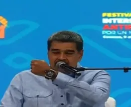 El presidente venezolano fue uno de los principales oradores en el Festival Internacional Antifascista, donde recordó al histórico futbolista argentino.