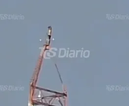 Un peligro. Revuelo en Capital por la presencia de un hombre en la cima de la torre de Radio Colón