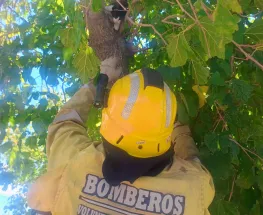El Cuartel N°5 de Bomberos Voluntarios logró rescatar a un gatito de cinco meses que estaba asustado en la copa de un árbol en el barrio Vildo III de Santa Lucía.
