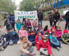 Los chicos de las salas de 3, 4 y 5 de la ENI 63 cantaron y repartieron escarapelas en la Plaza 25 de Mayo, junto a sus docentes.