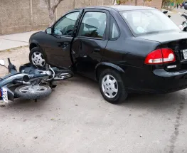 Iban en moto y chocaron contra un auto. Terminaron hospitalizados por el fuerte choque.