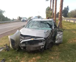 Una oficial del Comando Radioeléctrico Sur resultó herida luego de perder el control de su vehículo tras la rotura de un neumático y chocar contra una palmera en Rawson.