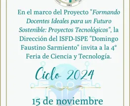 ISFD-ISPE "Domingo Faustino Sarmiento" presenta la 4° Feria de Ciencia y Tecnología el próximo 15 de noviembre.