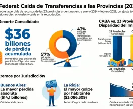 El recorte de U$S 18.326 millones en envíos nacionales golpea a Cuyo: San Luis perdió U$S539 por habitante, San Juan U$S 389 y Mendoza U$S220. El ajuste federal dejó a La Rioja como la más perjudicada con U$S$1.742 per cápita, mientras CABA fue la ú ...