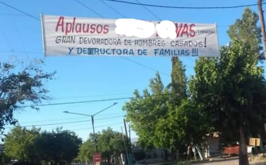 "Destructora de hogares". Eso dice un pasacalles que apareció en el barrio FOEVA de Rivadavia. Sorprendió a todos, no solamente por lo hilarante de la acusación, sino que fue con nombre y apellido.