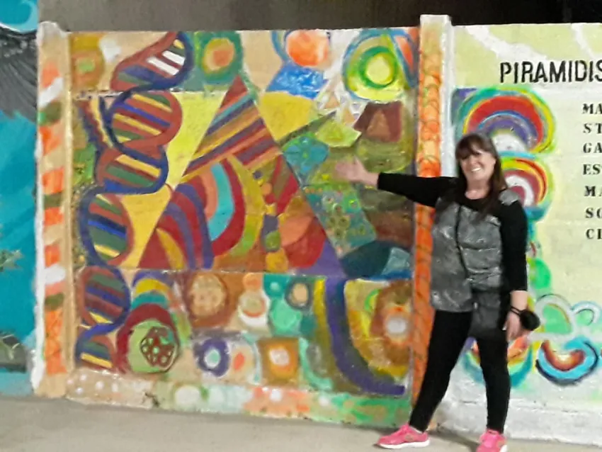 Explicaron que hace poco tiempo, hicieron un mural con esta técnica en Rivadavia, en un paseo que hay en las inmediaciones de Ignacio de la Rosa y Calivar. Para lograr esta obra participaron varias artistas y contaron con el apoyo de los materiales de la Municipalidad de Rivadavia.