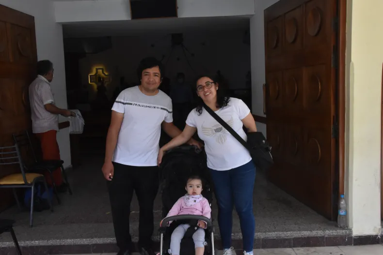 Verónica llegó con su esposo Nelson e hija desde Capital para agradecer a la virgen. "Cuando estaba embarazada venía siempre a agradecerle a la virgen". Recordó que "en la pandemia no pudimos acompañarla presencialmente pero lo hicimos virtual".