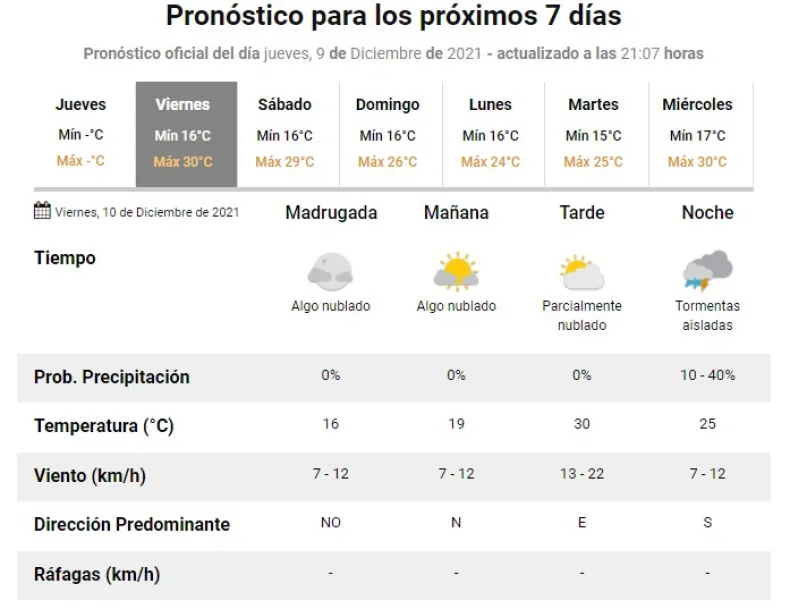 La semana terminará con una máxima de 30°C; por la mañana y tarde estará algo nublado y por la noche llegarían las tormentas aisladas.