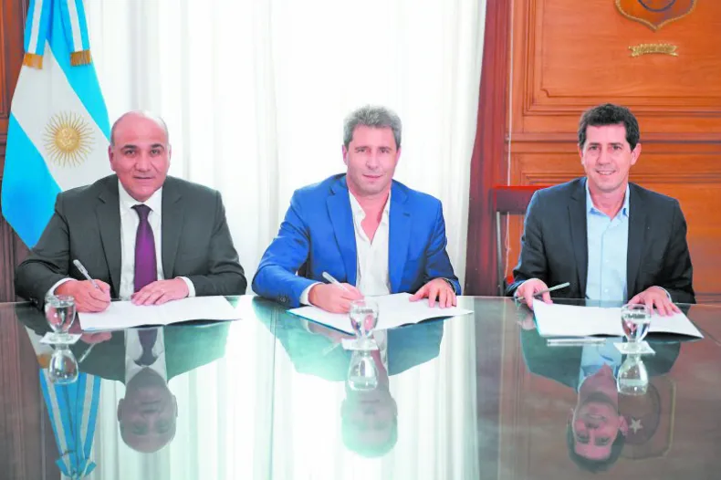El gobernador Sergio Uñac participó este lunes en Buenos Aires en la firma del convenio de asistencia financiera y adhesión entre la Provincia de San Juan y el Fondo Fiduciario Federal de Infraestructura Regional para la construcción del túnel de Zonda.