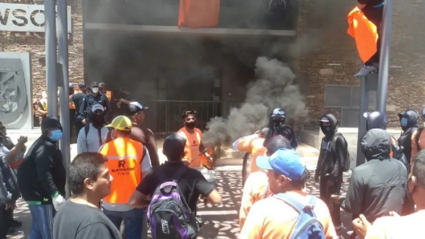 El paro que se inició el día lunes en el Obrador Central ubicado sobre calle Frías, en la mañana de hoy la movilización y protesta se trasladó hasta las puertas de la Municipalidad.