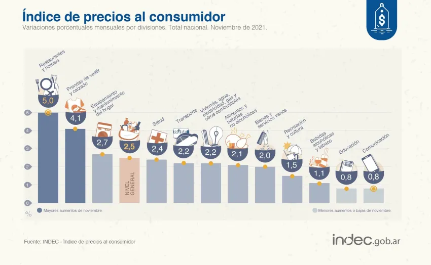De esta forma agosto y noviembre son los dos meses de más baja inflación en el año.