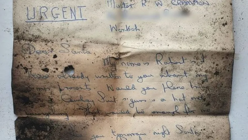 Una carta escrita a Papa Noel pidiéndole regalos para un niño fue descubierta después de que estuviera atascada en un chimenea durante 60 años.