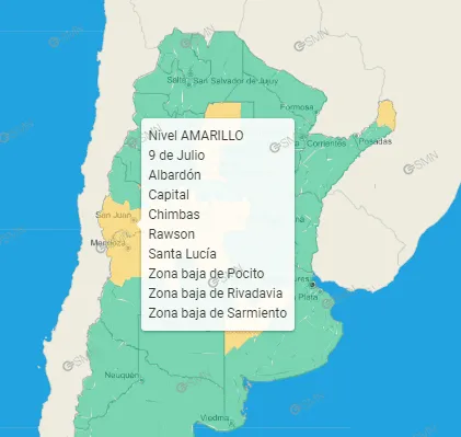 En tal sentido, el organismo nacional emitió un alerta amarilla que rige para gran parte de la provincia.