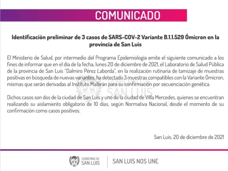 Alarma: detectan 3 casos de Ómicron en una provincia que limita con SJ
