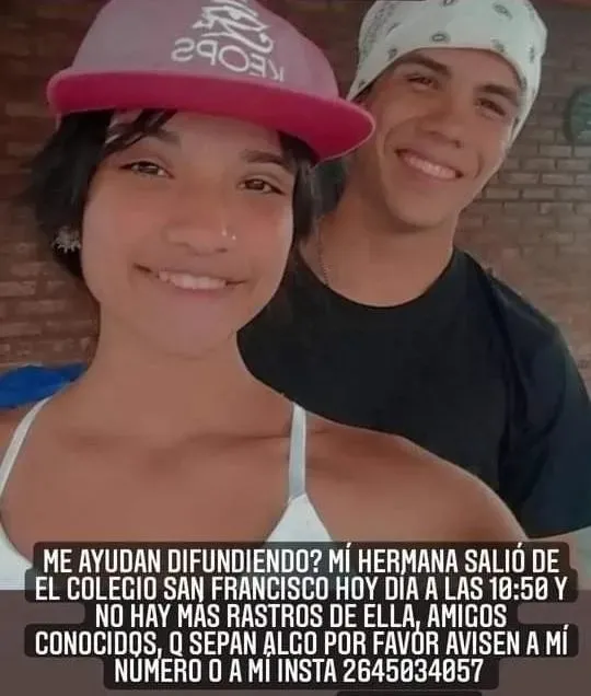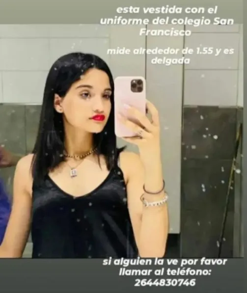 Evelyn Nahir Firmapaz salió de su casa, en Chimbas, rumbo al colegio San Francisco para rendir este martes en la mañana pero cerca de las 11. Terminó el examen y tras irse del establecimiento educativo, desapareció.