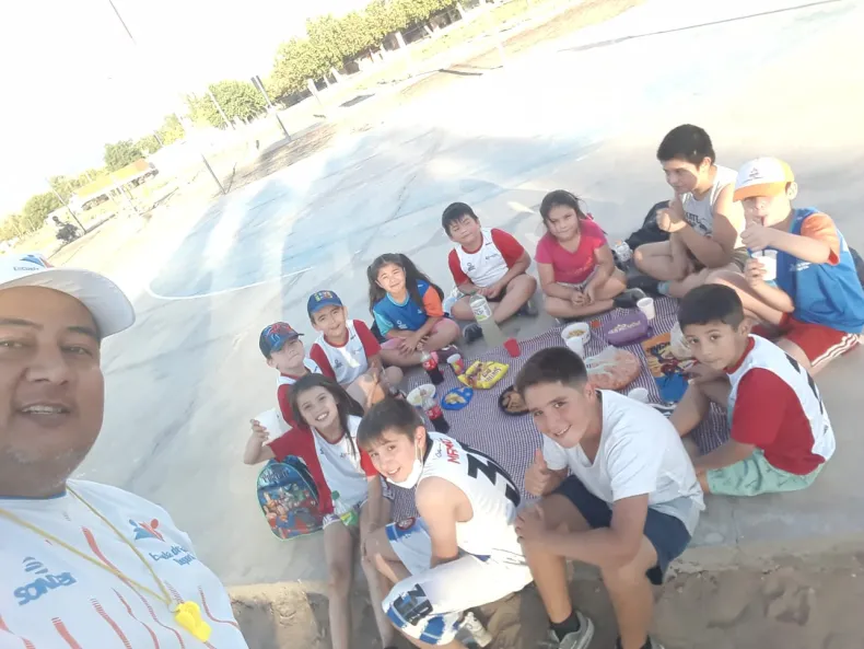 En Caucete, en el Parque Libertadores de América a cargo del profesor José Mario Millicay de la disciplina básquet, también realizó el encuentro con partidos y disfrutando de lo que tanto les gusta realizar.