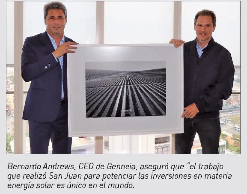 Bernardo Andrews puso en valor que "el trabajo que realizó San Juan para potenciar las inversiones en materia energía solar es único en el mundo y desde Genneia apostamos a seguir creciendo y liderando este mercado en Argentina. Ullúm será uno de los principales conjuntos solares del país luego de la ampliación, superando los 160 MW de potencia instalada".
