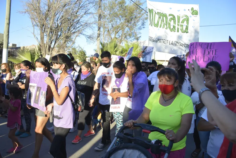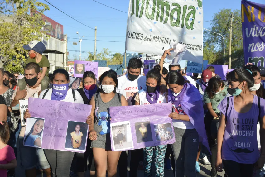 "Justicia por Yoselí, Ley de emergencia de género", gritaban las integrantes de organizaciones feministas que guiaban la marcha, encabezada por niños de la zona, familiares y vecinos.