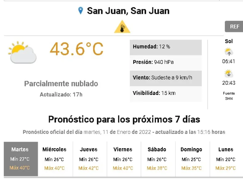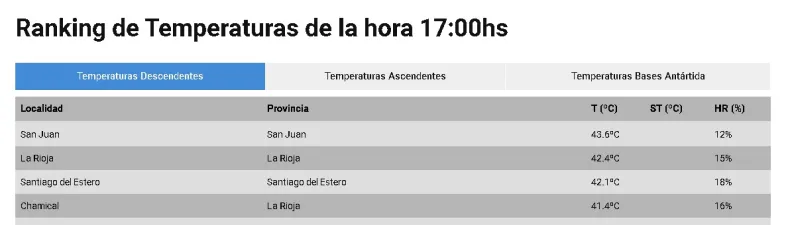 a la hora 17 la provincia registraba 43.6º de temperatura, superando por varios grados la máxima que se preveía, de solo 40º.